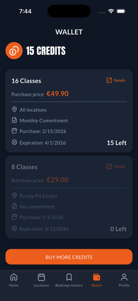 I tuoi clienti possono gestire in totale autonomia i propri pacchetti, acquistando e prenotando lezioni comodamente dal proprio smartphone.